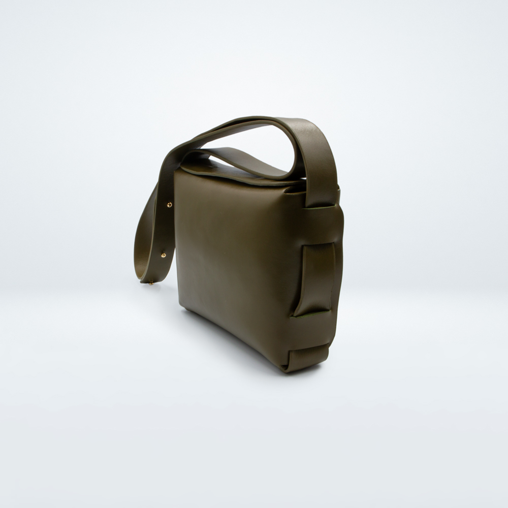 Fermeture du sac par un double rabat aimanté.